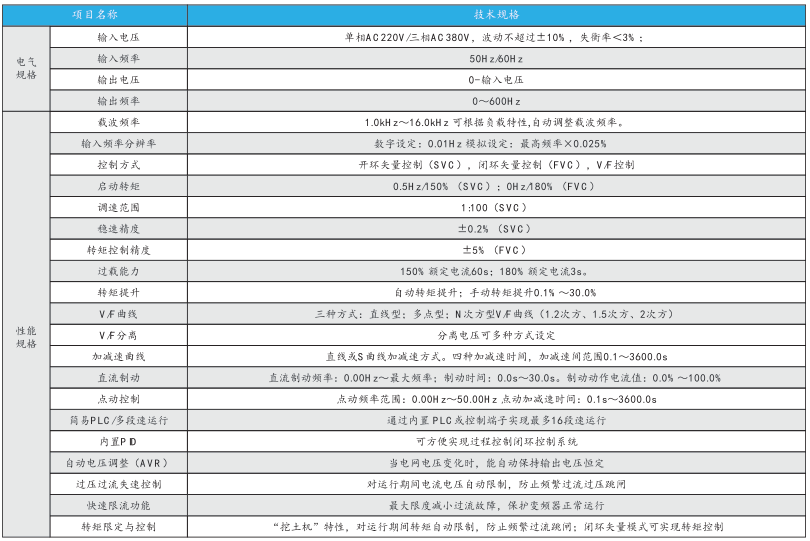 TGEV6系列变频器是一款无速度传感器电流矢量型变频器。在提高稳定性的前提下增加了电机参数自辨识、模拟量电流输出、开关量...
